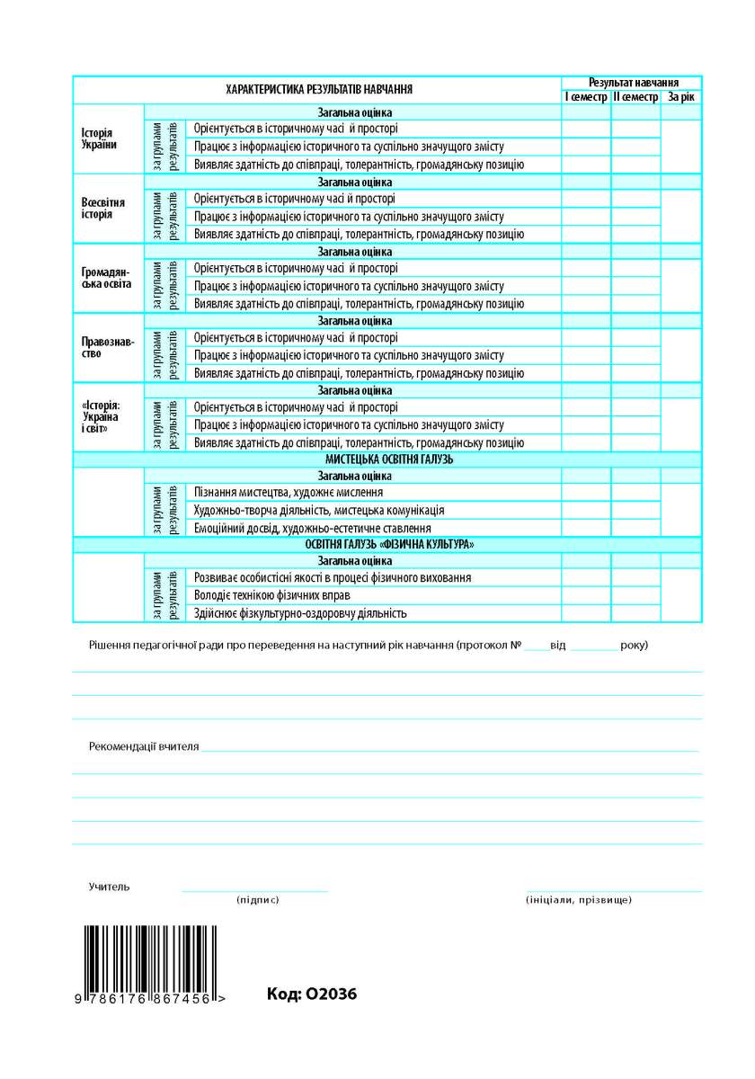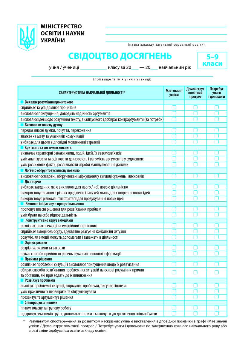 Свідоцтво досягнень 5-9 кл. (упаковка – 30 шт.)